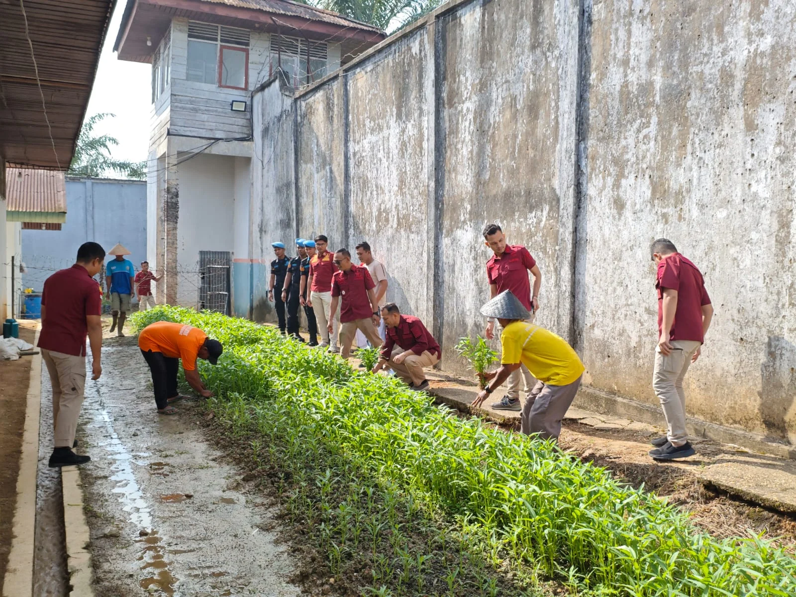 Rengat|Tran7riau.com – Rumah Tahanan Negara (Rutan) kelas llB Rengat melakukan panen raya hasil budidaya Warga Binaan Permasyarakatan (WBP) Sayur Kangkung sebanyak 100 kilogram bersama CV. Rosadia Petaho. Pada, kamis (10/7/2025). Budidaya Sayur Kangkung ini merupakan salah satu pembinaan kemandirian bagi warga binaan Rutan Kelas IIB Rengat. Panen Raya ini adalah upaya untuk mewujudkan ketahanan pangan dan pembinaan mandiri di Lingkungan Pemasyarakatan.